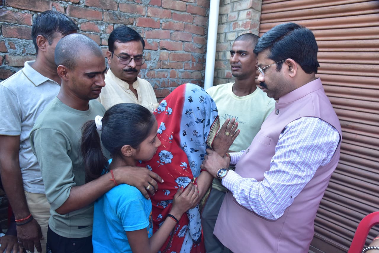 कैबिनेट मंत्री नन्द गोपाल गुप्ता नन्दी ने मृतक व्यापारी संतराम के परिजनों से की मुलाकात