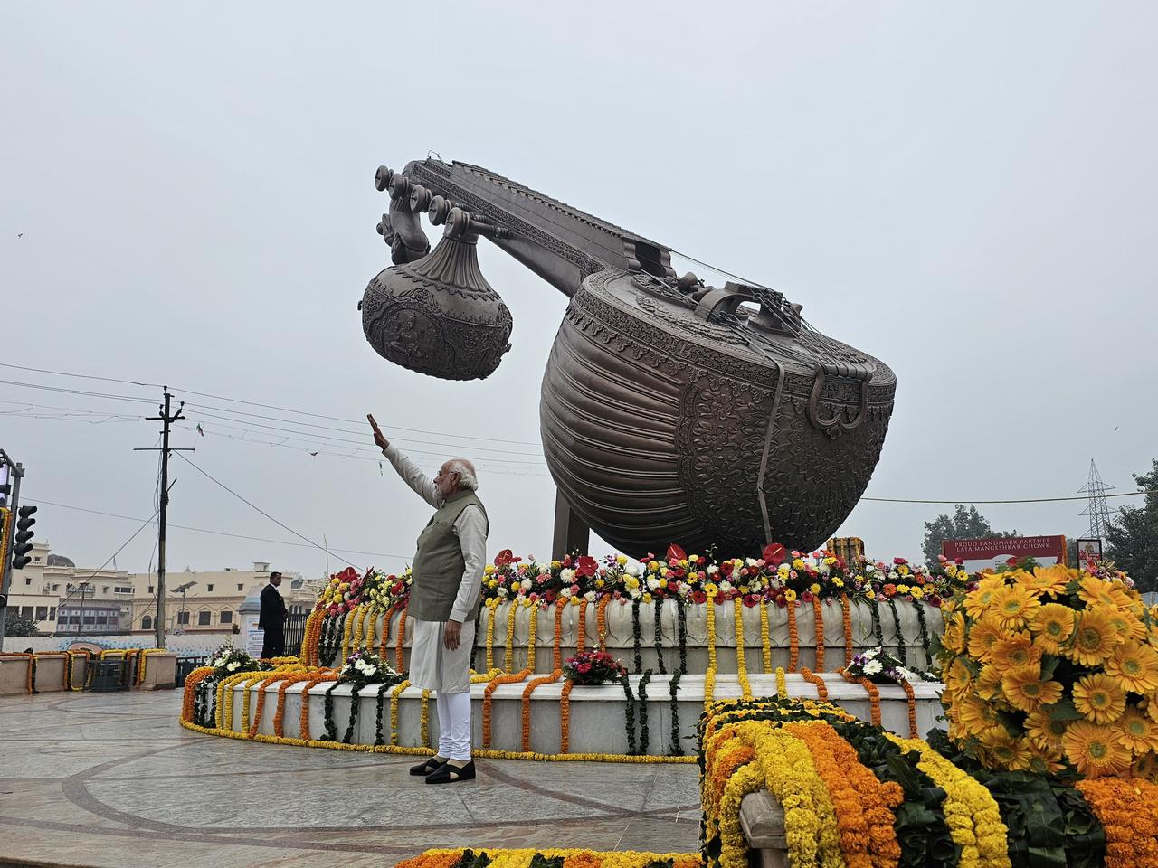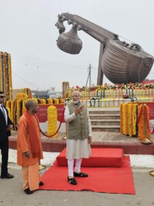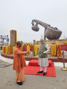 इसमें प्रधानमंत्री नरेंद्र मोदी वर्चुअल और मुख्यमंत्री योगी आदित्यनाथ अयोध्या में मौजूद थे। यहां 14 टन वजनी व 40 फ़ीट लम्बी वीणा लगाई गई है। शनिवार को यहां वीणा के पास पहली बार पहुंचकर प्रधानमंत्री नरेंद्र मोदी भाव विभोर हो गए। उन्होंने वीणा को निहारकर यहां की अलौकिक छवि का दीदार किया।