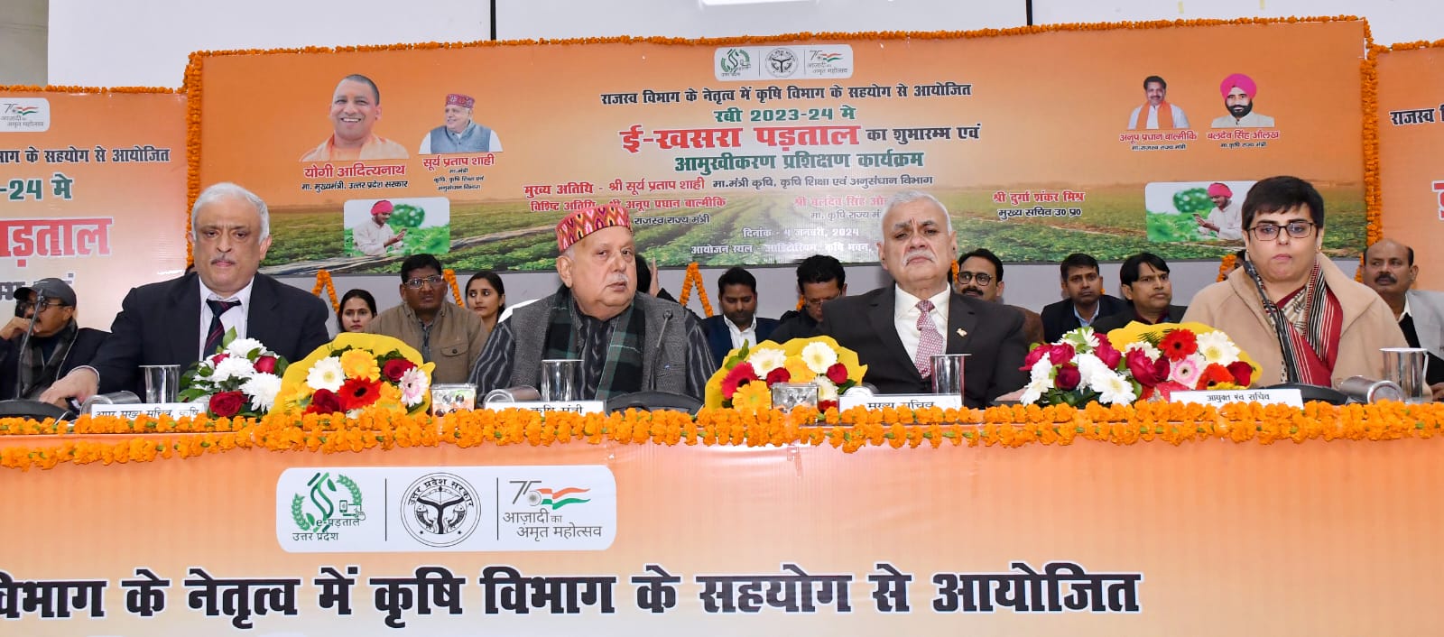 प्रदेश के कृषि मंत्री सूर्य प्रताप शाही ने कहा कि प्रधानमंत्री नरेन्द्र मोदी के नेतृत्व में विगत 10 वर्षों में टेक्नोलॉजी के माध्यम से सभी क्षेत्रों में हमारा देश रैकिंग में आगे है। मुख्यमंत्री योगी आदित्यनाथ के नेतृत्व में उ0प्र0 25 योजनाओं में नम्बर-1 या नम्बर-2 पर है। प्रधानमंत्री व मुख्यमंत्री द्वारा जनता के हितों का ध्यान रखा जा रहा है एवं उनके लिये विभिन्न योजनाओं को संचालित किया जा रहा है। उन्होने कहा कि कृषि क्षेत्र में टेक्नोलॉजी का अधिक से अधिक उपयोग किया जा रहा है। इसके अन्तर्गत सभी फसलों का डिजिटल सर्वे कराया जा रहा है।