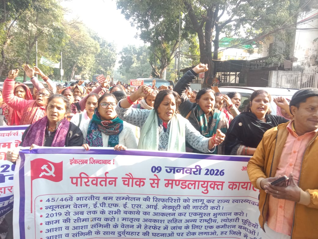 आल इंडिया स्कीम वर्कर्स फेडरेशन की राष्ट्रीय उपाध्यक्ष ,दिल्ली आशा कर्मचारी संघ की अध्यक्ष श्वेता राज ने प्रदर्शनकारी आशा कर्मियों को संबोधित करते हुए कहा कि केंद्र व राज्य सरकार 45/46वें भारतीय श्रम सम्मेलन की सिफारिशों को लागू कर कर्मचारी का दर्जा देने ,न्यूनतम वेतन , ईपीएफ , ईएसआई और ग्रेच्युटी की सुविधा देने में कोई रुचि नहीं दिखाई । पिछले 12 वर्षों से सरकार की खुद की सिफारिशें धूल फांक रही हैं। 44 श्रम कानूनों को खत्म कर 4 श्रम संहिताओं को लागू करने की मोदी सरकार की कवायत भविष्य में इस संभावना पर ही पूर्ण विराम लगाने की तरफ बढ़ा हुआ कदम है। इसलिए आज उत्तर प्रदेश में जारी आंदोलन ऐतिहासिक रूप से बहुत महत्वपूर्ण हो गया है। सरकार को पीछे धकेलना होगा।