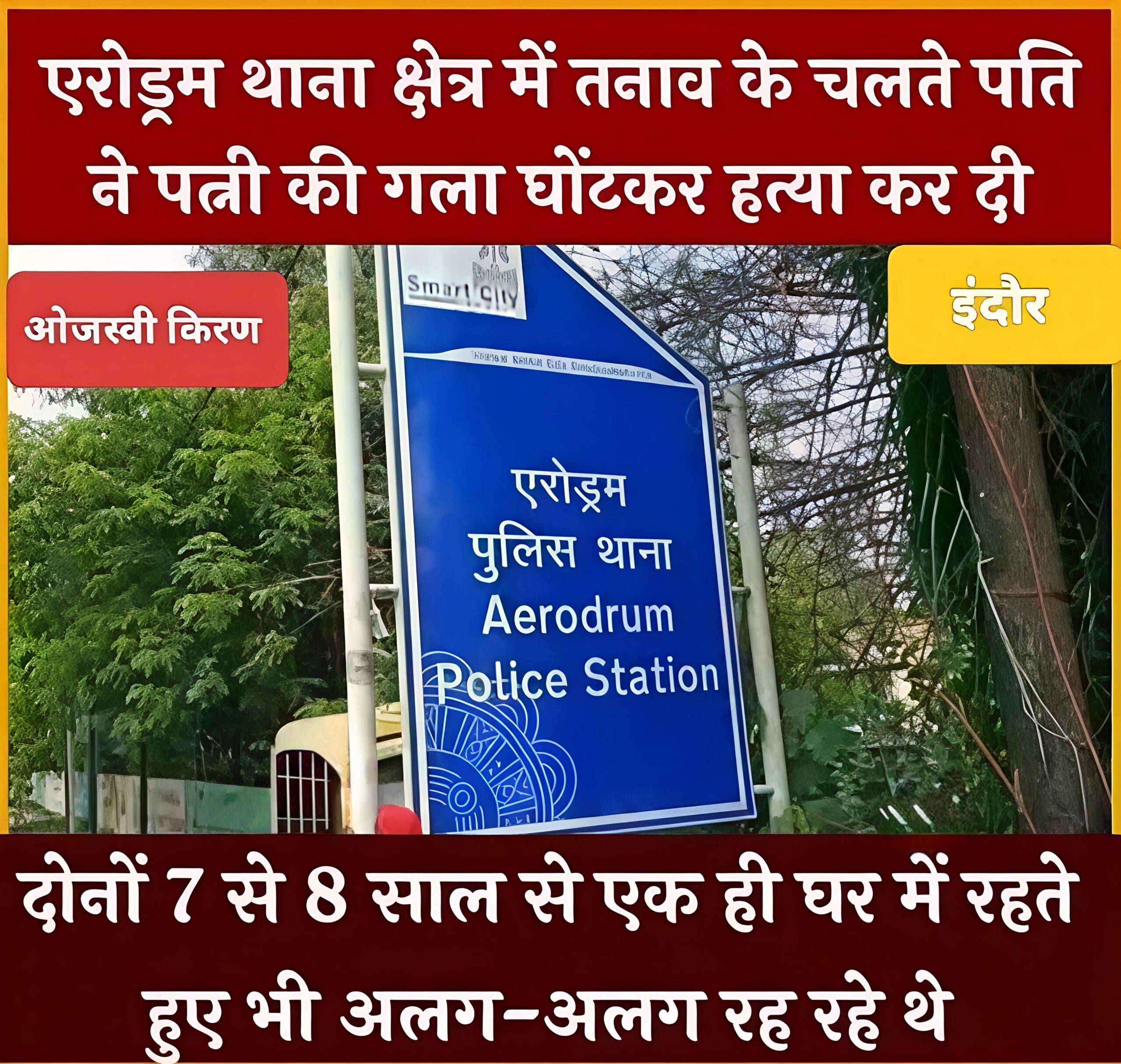 एरोड्रम थाना क्षेत्र में तनाव के चलते पति ने पत्नी की गला घोटकर हत्या कर दी, दोनों 7, 8 साल से एक ही घर में रहते हुए भी अलग-अलग रह रहे थे