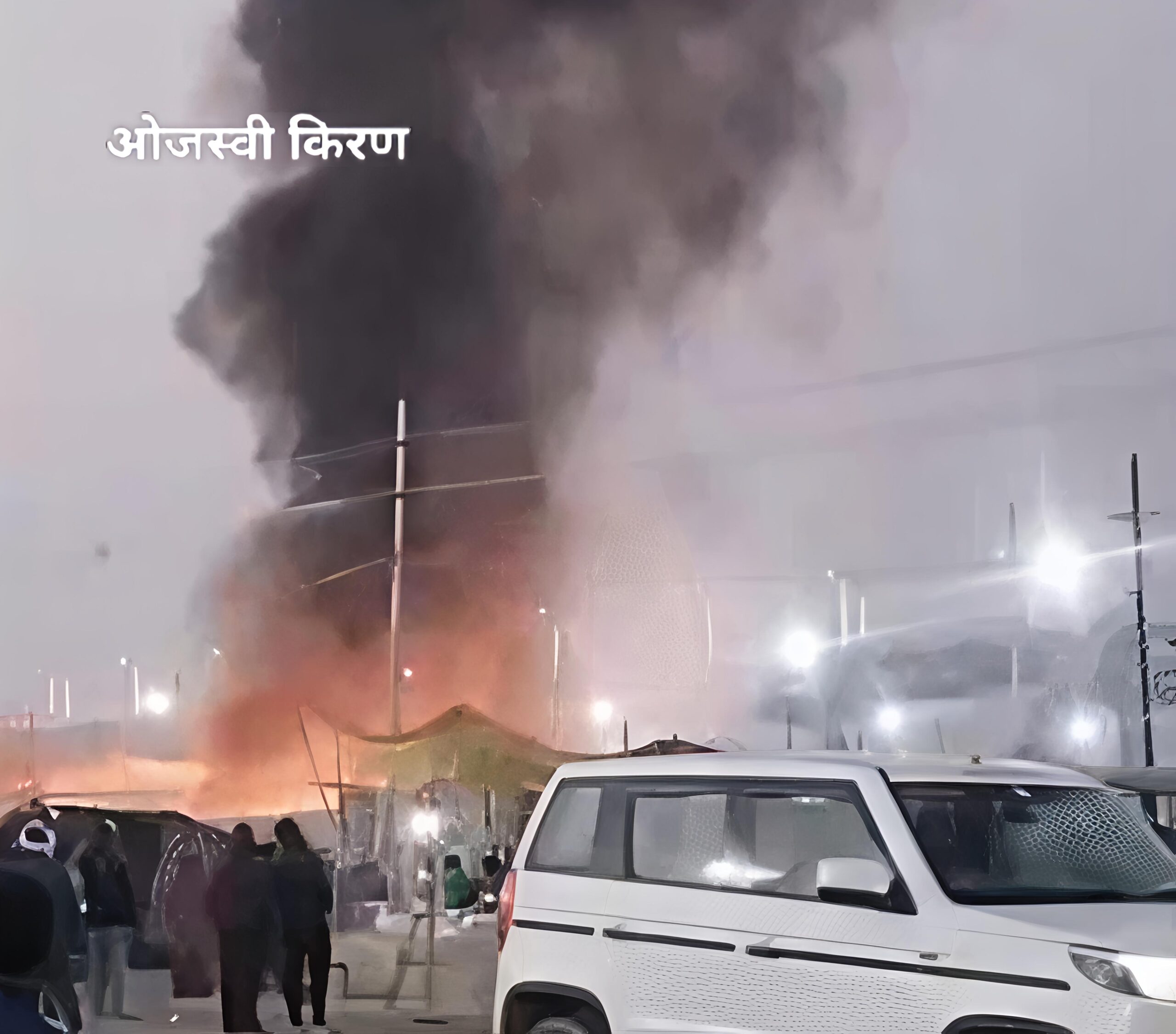 माघ मेले के सेक्टर पांच में लगी भीषण आग,कल्पवासी भागे, फायरकर्मी-संत आग को काबू पाने में जुटे, दर्जनों कैम्प और दुकानें स्वाहा