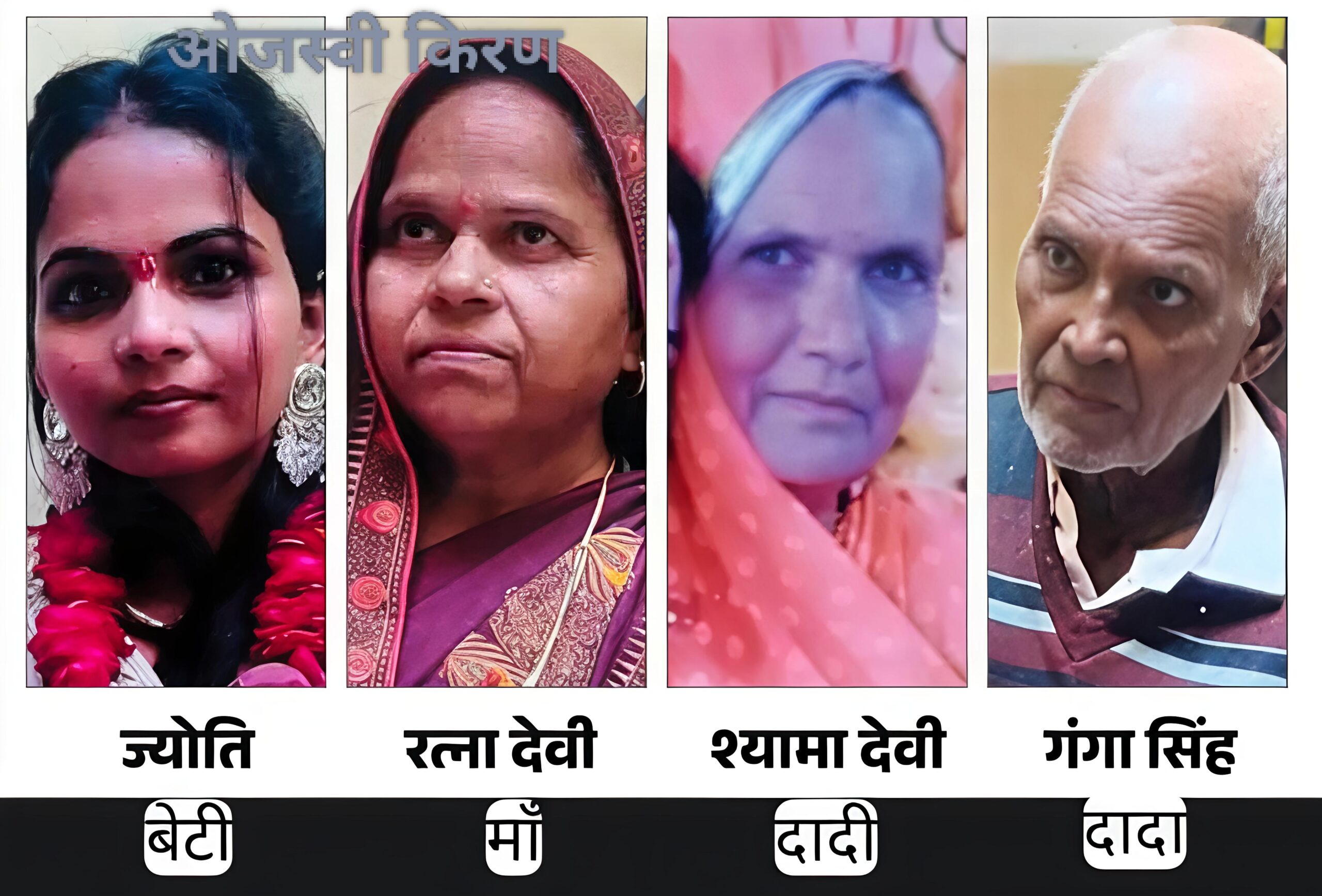 मृतकों में गंगा सिंह (75),उनकी पत्नी श्यामा देवी (70), बहू रत्ना देवी पत्नी कमल सिंह (45) और कमल की बेटी ज्योति (20) शामिल हैं। मामला कोतवाली नगर क्षेत्र के नगला प्रेमी इलाके का है। परिवार में अब कमल सिंह, उनकी 17 साल की बेटी लक्ष्मी और 5 साल देवांश बचा है।