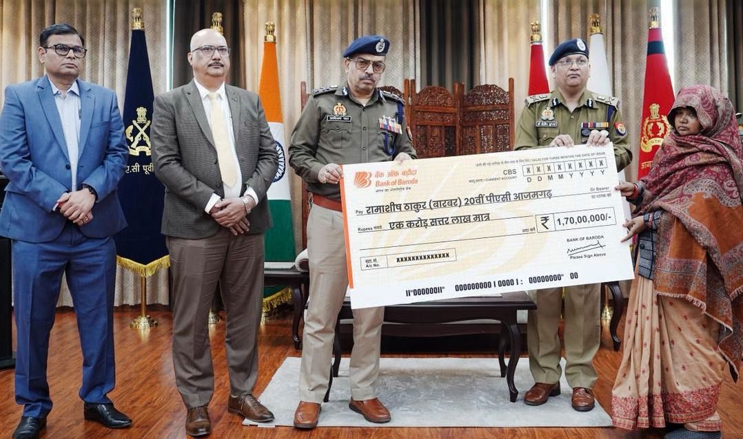 लखनऊ। पुलिस महानिदेशक उ0प्र0 के निर्देशन में अमिताभ यश अपर पुलिस महानिदेशक कानून एवं व्यवस्था उ0प्र0 द्वारा विभिन्न जनपदों में अलग-अलग तिथियों में मृत पुलिस कर्मियों के शोक संतप्त आश्रित परिजनों एवं सड़क/ट्रेन दुर्घटनाओं में दिव्यांग हुए पुलिस कर्मियों को बैंक ऑफ बड़ौदा, पुलिस सैलरी पैकेज के अंतर्गत स्वीकृत धनराशि का चेक प्रदान किया गया।