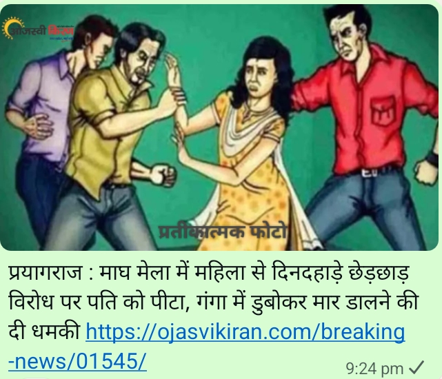 माघ मेला में महिला से दिनदहाड़े छेड़छाड़ विरोध पर पति को पीटा, गंगा में डुबोकर मार डालने की दी धमकी https://ojasvikiran.com/breaking-news/01545/