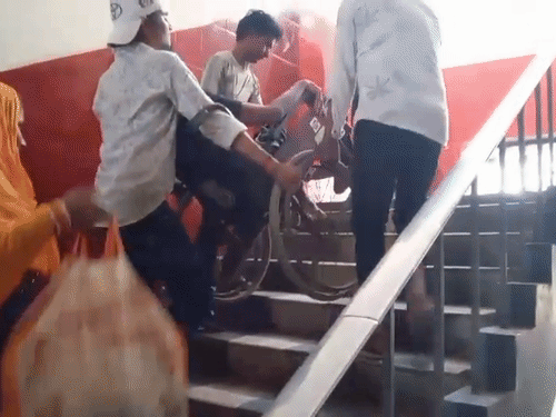 पहली एवं दूसरी मंजिल तक सीढ़ियों के सहारे मरीजों की जान जोखिम में डालकर ले जाते तीमारदार