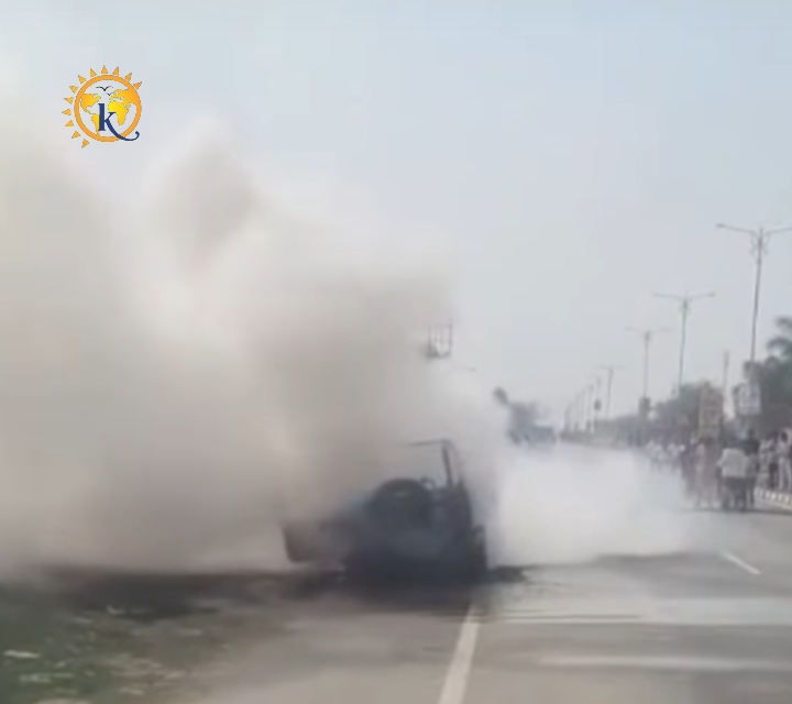 चलती थार गाड़ी में लगी आग, कूदकर भागे सवार