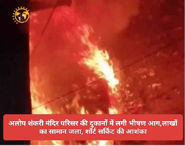 अलोप शंकरी मंदिर परिसर की दुकानों में लगी भीषण आग,लाखों का सामान जला, शॉर्ट सर्किट की आशंका