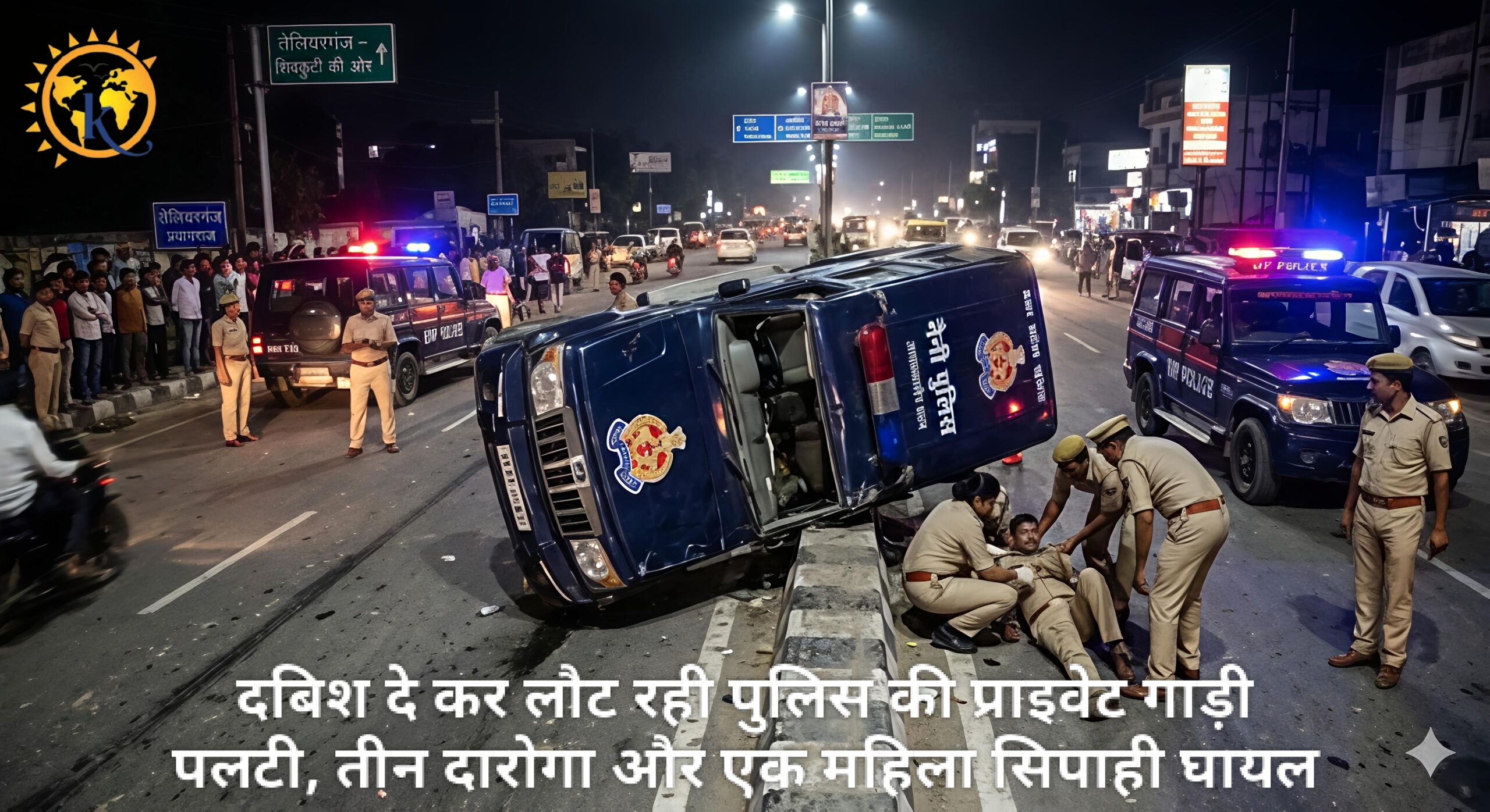 दबिश दे कर लौट रही पुलिस की प्राइवेट गाड़ी पलटी, तीन दारोगा और एक महिला सिपाही घायल