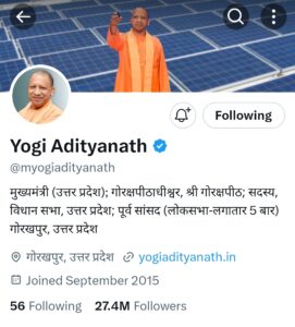 एक्स पर नम्बर 01 मुख्यमंत्री बने योगी,एक्स पर 27.4 मिलियन लोग करते हैं सीएम योगी को फॉलो