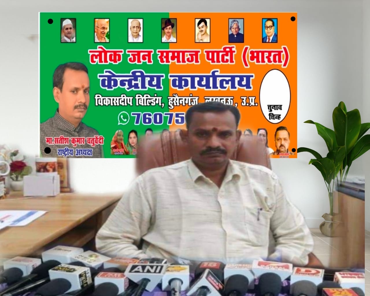लखनऊ : लोक जन समाज पार्टी भारत केंद्रीय कार्यालय हुसैनगंज चारबाग स्टेशन रोड विकास दीप में इलेक्ट्रॉनिक और प्रिंट मीडिया के सम्मानित संवाददाता साथियों के साथ प्रेसवार्ता करते हुए राष्ट्रीय अध्यक्ष सतीश कुमार चतुर्वेदी ने बताया कि पार्टी 2020 से लगातार जनहित के मुद्दों को उठाती रहती है। और आम जनमानस से लेकर क्षेत्र के तमाम समस्याओं को निस्तारण करने का प्रयास करते रहते है जिसमें तमाम जगह चौपाल के माध्यम से नुक्कड़ सभा के माध्यम से एवं आम जनसभा के माध्यम से जागरूक करने हेतु आम जन मानस से सीधा संवाद किया जाता है। जिसमें उत्तर प्रदेश सहित मध्यप्रदेश, बिहार, झारखंड, महाराष्ट्र, उतराखंड एवं छत्तीसगढ़ में सामान्य लोकसभा 2024 के चुनाव में पार्टी प्रत्याशी उतारने की तैयारी कर रही है।जिसमें अभी तक उत्तर प्रदेश बिहार और मध्य प्रदेश में आठ प्रत्याशियों की घोषणा हो चुकी है। बाकी के सीटों पर तैयारी चल रही है। जिसमें की हम सभी लोग हर घर हर द्वार और आम जनमानस से संपर्क करके उन्हें जागरूक करने का कार्य कर रहे हैं। और लोकसभा चुनाव के तत्पश्चात सरकार बनाने हेतु हमारी पार्टी मुख्य भूमिका निभाएंगी जिसमें सरकार की भागीदारी सुनिश्चित करने हेतु हमारे बूथ स्तर से लेकर राष्ट्रीय स्तर तक के सभी कार्यकर्ता एवं पदाधिकारी गण जी जान से लगे हुए हैं। और आगे भी लगे रहेंगे हमारी सरकार में भागीदारी होती है तो निश्चित तौर पर पार्टी के द्वारा यह गारंटी और घोषणा किया जाता है की एक समान शिक्षा (शिक्षा नीति) एक समान स्वास्थ्य चिकित्सा (चिकित्सा नीति) एवं नए रोजगारों का सृजन करते हुए हर घर को प्रतिमाह चार सौ यूनिट बिजली एवं तीन सौ लीटर पानी मुहैया कराने का कार्य पार्टी करेगी जिसमें महिलाओं के लिए यातायात की सुविधा निशुल्क किया जाएगा एवं नर्सरी से लेकर ग्रेजुएशन तक शिक्षा मुफ्त किया जाएगा। एवं हर परिवार को 5 लाख रुपए तक की स्वास्थ्य सेवा मुफ्त दिया जाएगा। पार्टी इस पर अमल करने का कार्य करेगी।