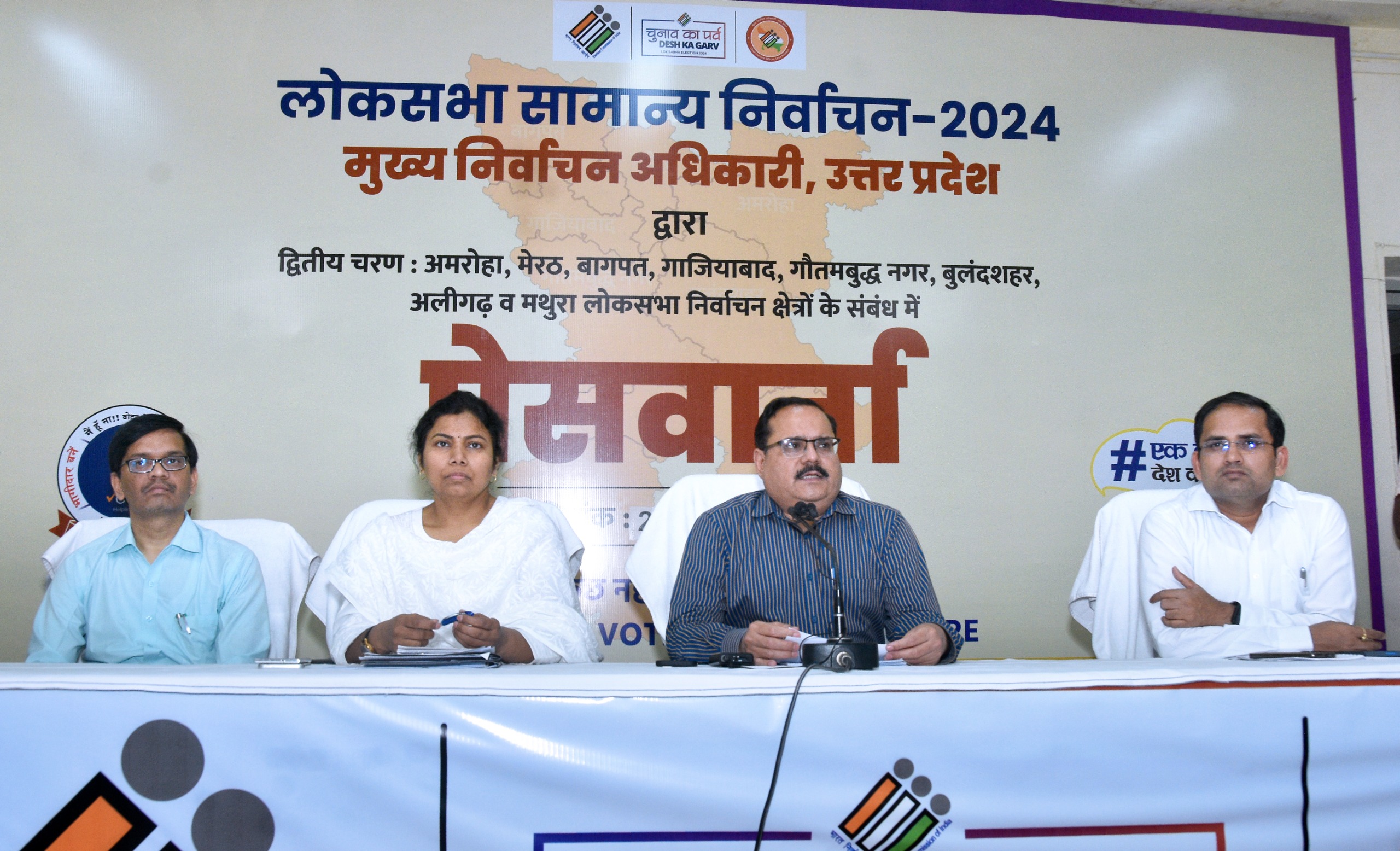 लखनऊ। प्रदेश के मुख्य निर्वाचन अधिकारी नवदीप रिणवा ने बताया कि लोकसभा सामान्य निर्वाचन-2024 के द्वितीय चरण में प्रदेश की 08 लोक सभा निर्वाचन क्षेत्रों 09-अमरोहा, 10-मेरठ, 11-बागपत, 12-गाज़ि़याबाद, 13-गौतमबुद्धनगर, 14-बुलंदशहर (अ0जा0), 15-अलीगढ तथा 17-मथुरा में मतदान शान्तिपूर्वक सम्पन्न हुआ। निर्वाचन क्षेत्र 09 जनपदों अमरोहा, हापुड़, मेरठ, गाजियाबाद, बागपत, बुलंदशहर, गौतमबुद्धनगर, अलीगढ तथा मथुरा में अवस्थित हैं।