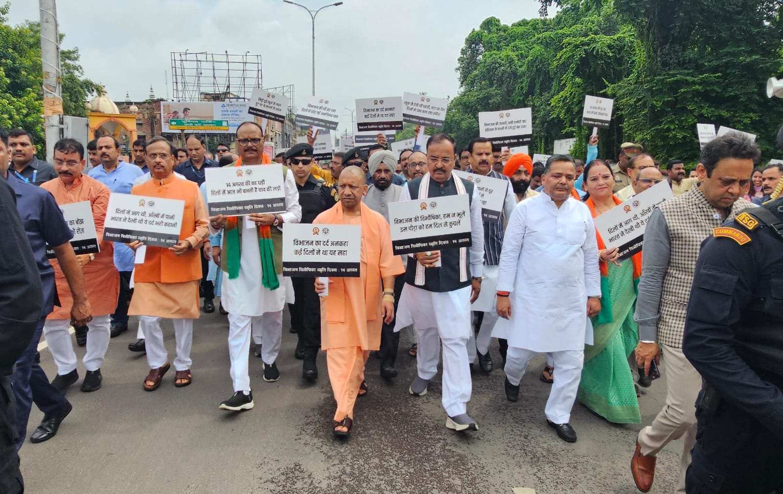 सीएम योगी के नेतृत्व में निकली विभाजन विभीषिका स्मृति मौन पदयात्रा