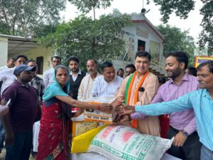 विधायक शहर उत्तरी ने जिला प्रशासन/आपदा प्रबंधन प्राधिकरण, प्रयागराज के सौजन्य से उपलब्ध कराये गये बाढ़ राहत सामाग्री किट का किया वितरण