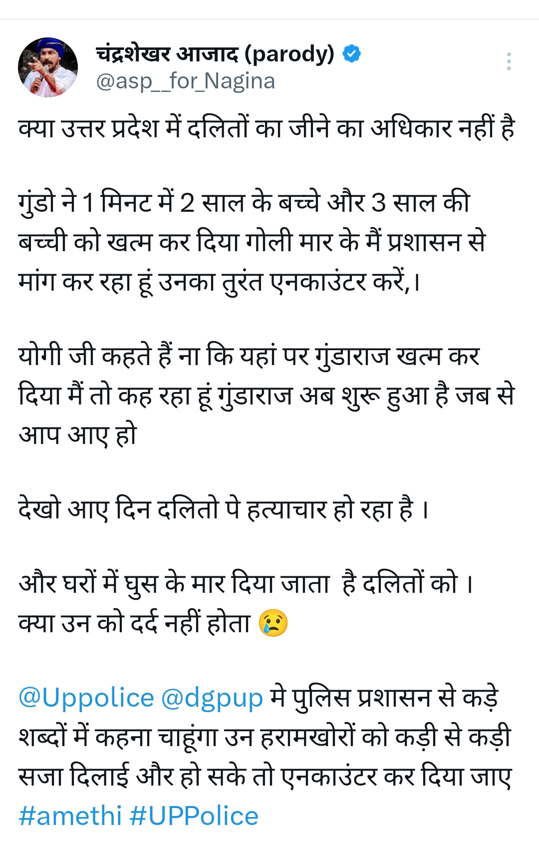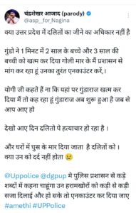 चंद्रशेखर आजाद ने एक्स पर लिखा है क्या उत्तर प्रदेश में दलितों का जीने का अधिकार नहीं है