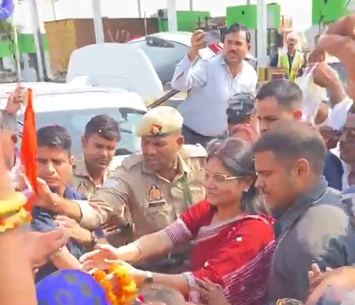 हंडिया प्रयागराज । अपना दल एस की राष्ट्रीय अध्यक्ष अनुप्रिया पटेल का शनिवार को प्रयागराज कार्यक्रम के दौरान हंडिया टोल प्लाजा के पास पार्टी के नेताओं व कार्यकर्ताओं ने उनका फूल मालाओं से लाद कर भव्य स्वागत किया।