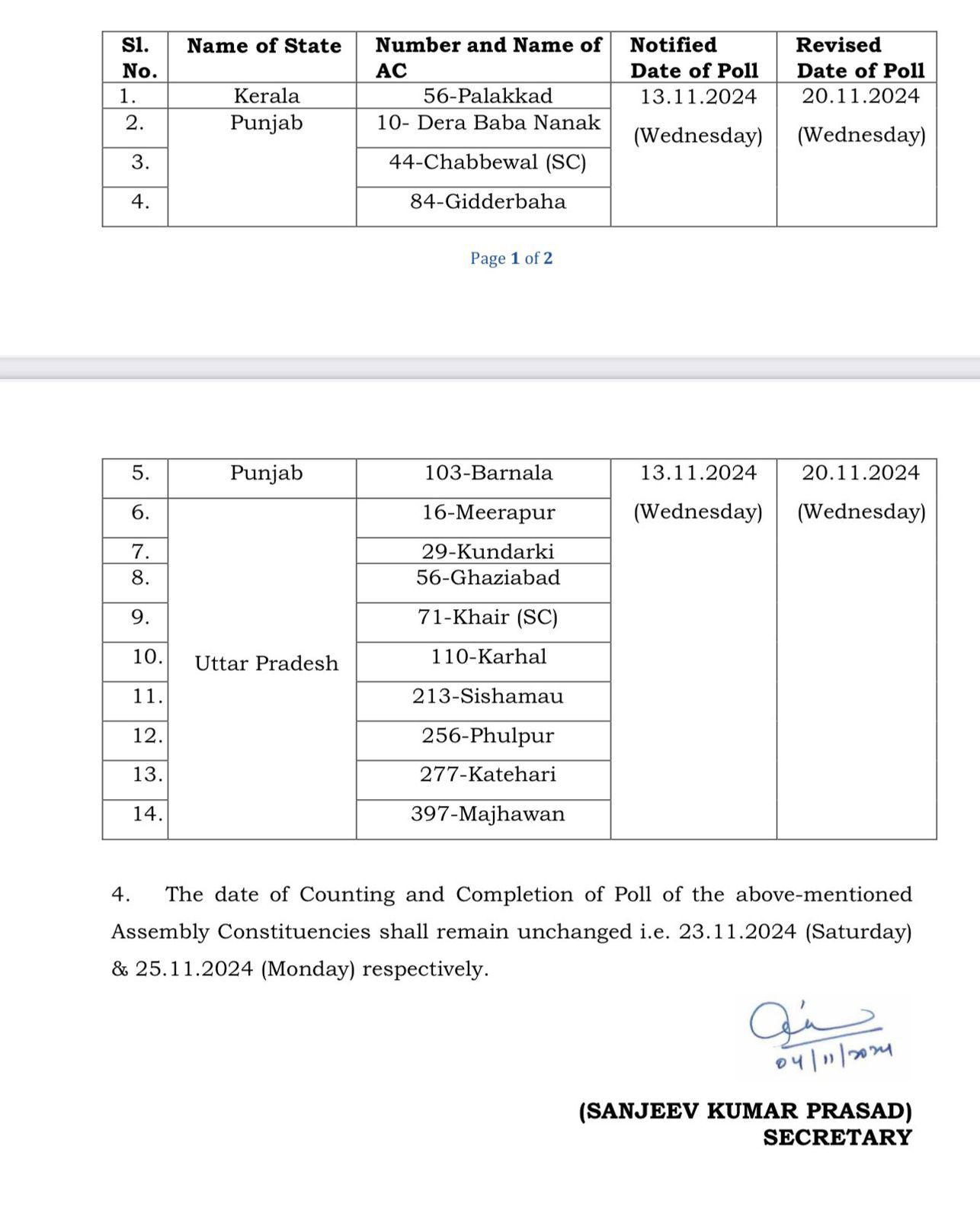 उत्तर प्रदेश की उप निर्वाचन की मतदान तिथि बढ़ी,अब 9 विधानसभा सीटों पर उप निर्वाचन 13 नवंबर के बजाय 20 नवंबर 2024 को होंगे