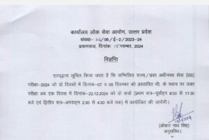 22 दिसंबर को होगी पीसीएस प्री. परीक्षा,एक ही दिन में दो पालियों में होगी परीक्षा