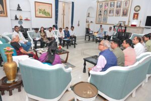 राज्यपाल ने मीडिया प्रतिनिधिमंडल के सदस्यों को हमारा राजभवन नामक पुस्तक भेंट की