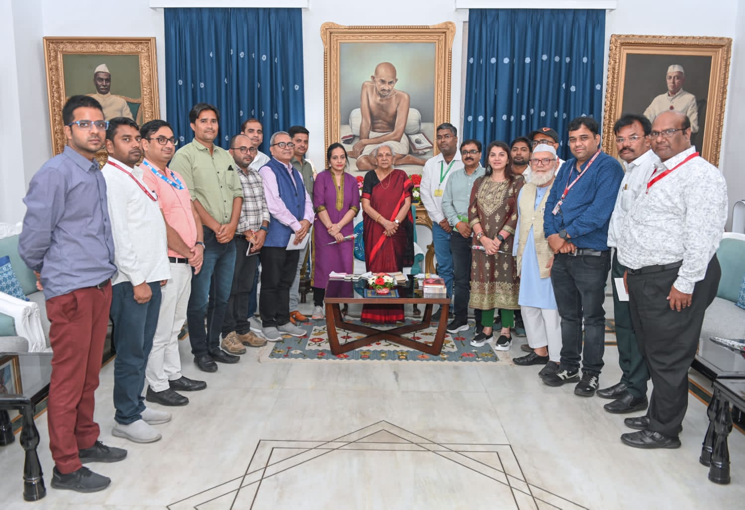मध्य प्रदेश के 13 सदस्यीय मीडिया प्रतिनिधिमंडल की राज्यपाल आनंदीबेन पटेल से शिष्टाचार भेंट