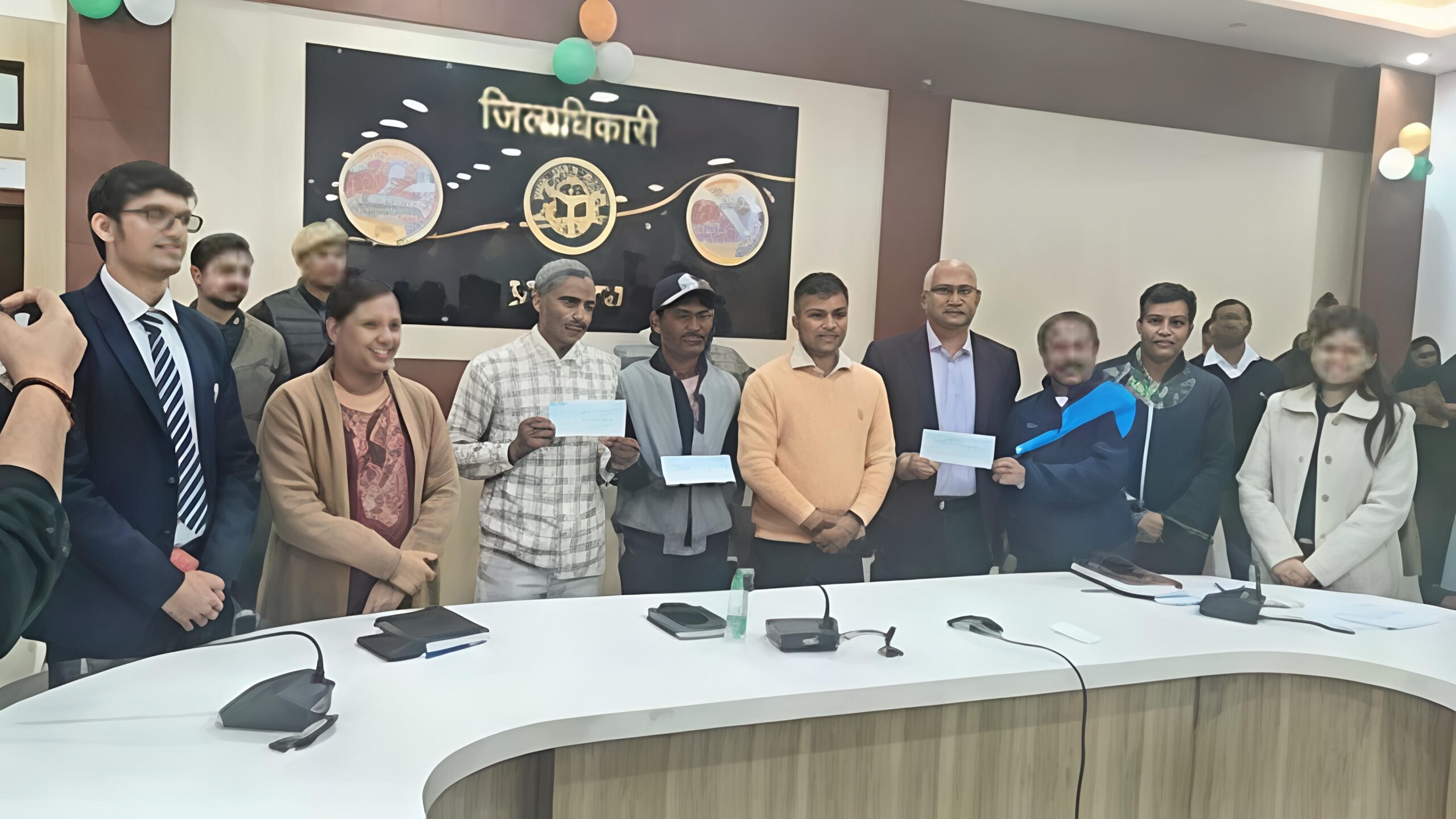 प्रयागराज : प्रयागराज के केपी कॉलेज के पास तालाब में माइक्रोलाइट एयरक्राफ्ट की आपातकालीन लैंडिंग के बाद फंसे दो पायलटों को बचाने वाले तीन जांबाजों को जिलाधिकारी मनीष कुमार वर्मा ने गुरुवार को एक-एक लाख रुपये का पुरस्कार दिया। कलक्ट्रेट सभागार में आयोजित समारोह में डीएम ने पंकज सोनकर, आलोक यादव और लाल साहब को चेक सौंपे तथा नगर निगम में अस्थायी नौकरी देने का आश्वासन भी दिया। इस अवसर पर मुख्य विकास अधिकारी हर्षिका सिंह, एडीएम सिटी सत्यम मिश्रा, क्षेत्रीय क्रीड़ा अधिकारी प्रेम कुमार सहित अन्य अधिकारी मौजूद रहे।घटना की पूरी जानकारी: बीते दिनों बमरौली एयरबेस से उड़े माइक्रोलाइट विमान में तकनीकी खराबी आ गई। केपी कॉलेज के पास तालाब में इमरजेंसी लैंडिंग के दौरान विमान पानी में डूबने लगा, जिसमें दो पायलट फंस गए। स्थानीय युवा पंकज सोनकर, आलोक यादव और लाल साहब ने साहस दिखाते हुए तालाब में कूदकर पायलटों को बाहर निकाला। उनकी तत्परता से दोनों पायलट सुरक्षित बच गए। इस घटना ने शहरवासियों में साहस और सेवाभाव की मिसाल कायम की।इससे पहले गणतंत्र दिवस के मौके पर इन जांबाजों को कई स्तरों पर सम्मानित किया गया। बमरौली एयरबेस पर एयर ऑफिसर कमांडिंग (एओसी) ने तीनों को सम्मानित किया, जहां बचाए गए दोनों पायलट भी मौजूद थे। पुलिस लाइन में आयोजित परेड के बाद उपमुख्यमंत्री केशव प्रसाद मौर्य ने इन्हें शाबाशी दी। डिप्टी सीएम ने कहा, “एयरक्राफ्ट में फंसे पायलटों को सुरक्षित निकालने के सेवाभाव को सलाम। ठीक ऐसा ही भाव हर देशवासी में होना चाहिए।” उन्होंने तीनों को एक-एक लाख नकद राशि और नौकरी की घोषणा भी की।महापौर उमेश चंद्र गणेश केसरवानी ने भी इन जांबाजों को सम्मानित कर शहरवासियों से ऐसे ही साहस की अपील की। ओजस्वी किरण इन साहसी युवाओं को बधाई देता है तथा उम्मीद करता है कि उनका यह कार्य अन्य लोगों के लिए प्रेरणा बनेगा।