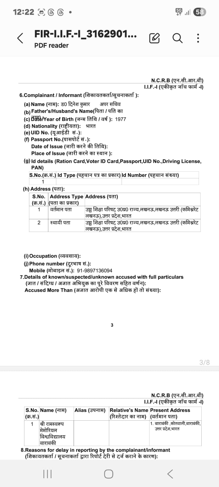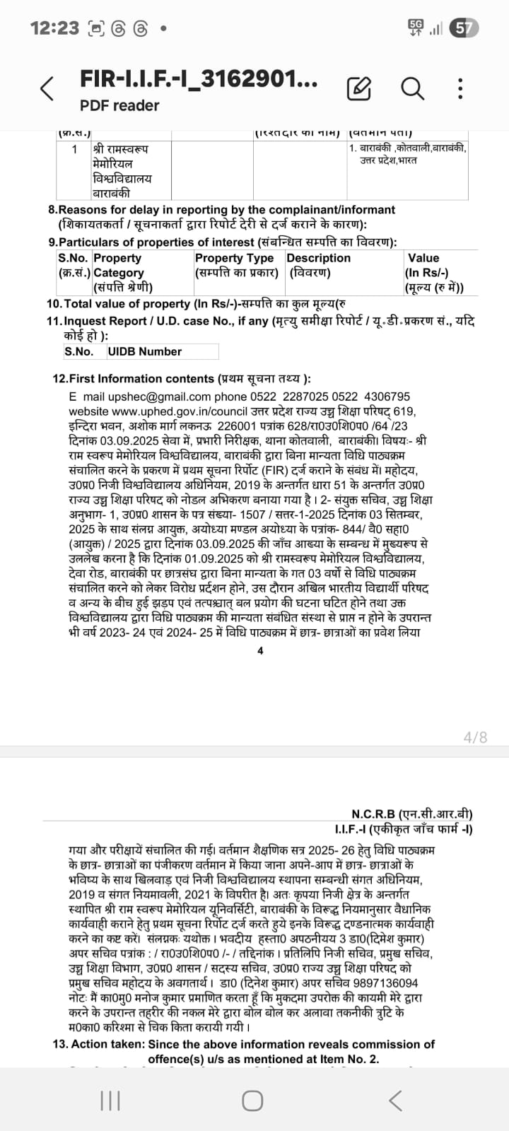 अपर सचिव, राज्य उच्च शिक्षा ने नगर कोतवाली बाराबंकी में दर्ज कराया मुकदमा