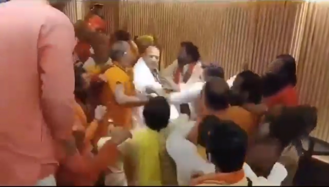 प्रयागराज : महाकुंभ मेला 2025 के जमीन आवंटन को लेकर सन्तों के गुटों के बीच मारपीट। साधु-संतों के बीच जमकर चले लात-घूंसे, जमीन आवंटन के लिए बुलाई गई अखाड़ा परिषद की बैठक में हंगामा, अफसर मान-मनौव्वल करते रहे। मेला प्राधिकरण कार्यालय में हुआ मारपीट सन्तों ने एक दूसरे पर जमकर बरसाए मुक्के। अखाड़ा परिषद के अध्यक्ष के सामने हुई मारपीट।