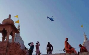हेलीकॉप्टर से की गई पुष्प वर्षा