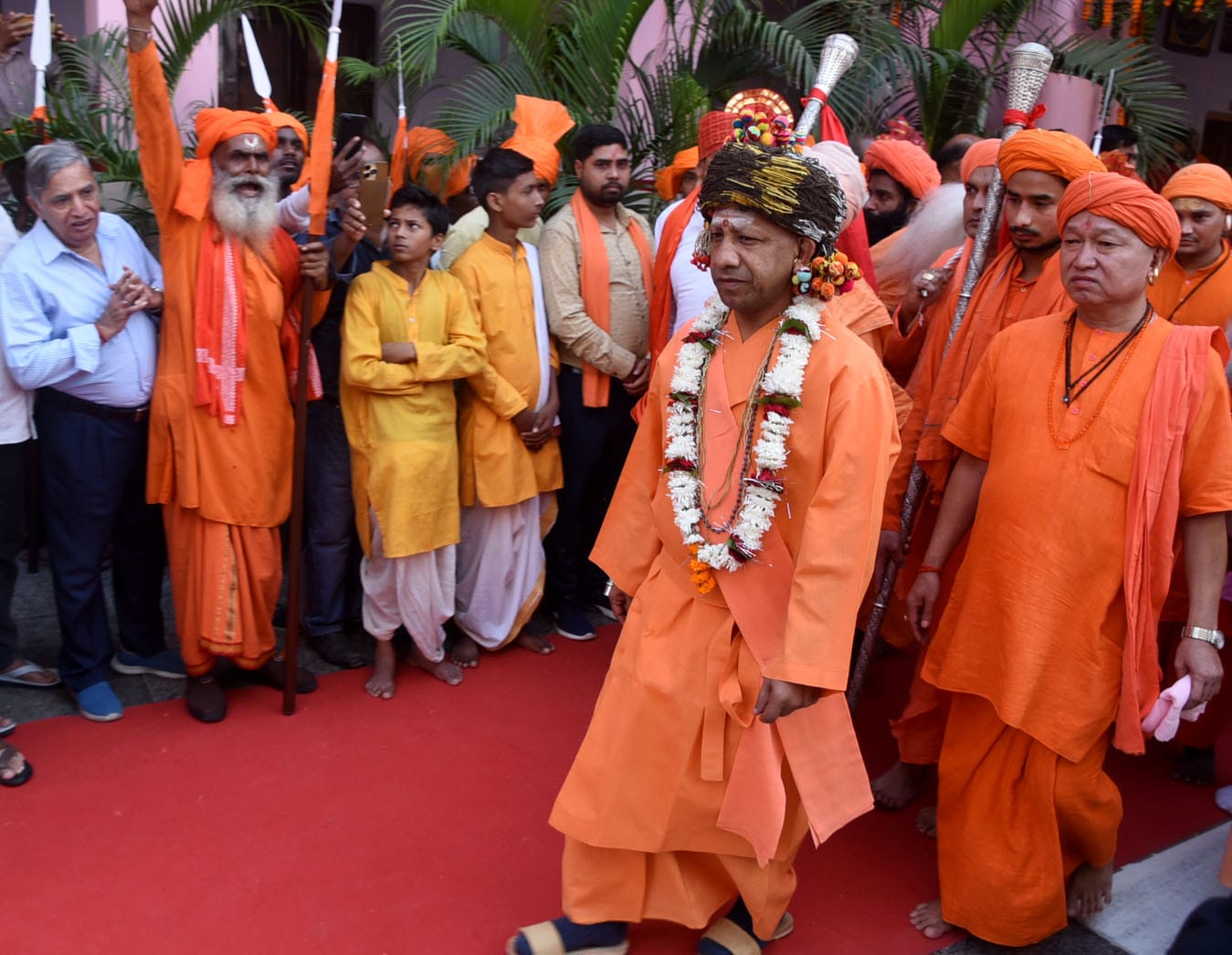 नाथपंथ के विशेष वाद्ययंत्र नागफनी, तुरही, नगाड़े, काशी से आए डमरू दल, ढोल व बैंड बाजे की धुन और हनुमान दल के बालकों के हैरतंगेज करतब के बीच शोभायात्रा आगे बढ़ी। जगह-जगह स्वागत में कलाकारों के विविध लोक नृत्य समूची भारतीय संस्कृति का प्रतिनिधित्व कर रहे थे। पूरे रास्ते दोनों किनारे पर श्रद्धा से भाव विभोर लोग गोरक्षपीठाधीश्वर की एक झलक पाने को आतुर नजर आ रहे थे।