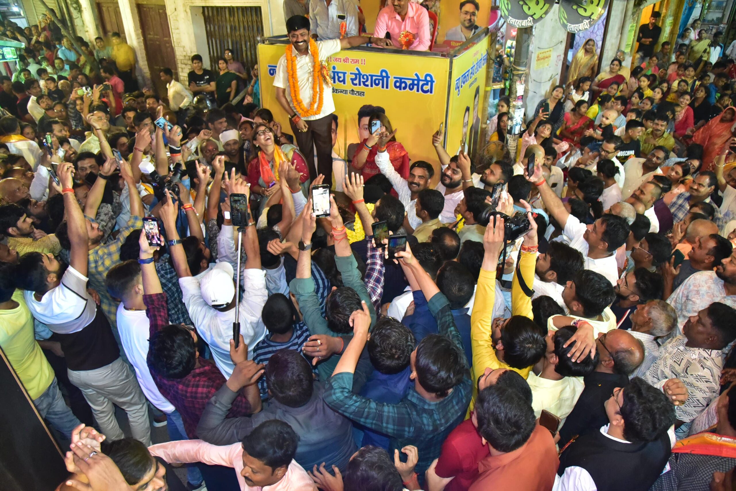 प्रयागराज। उत्तर प्रदेश सरकार के औद्योगिक विकास मंत्री नन्द गोपाल गुप्ता नन्दी ने आर्यकन्या चौराहे पर न्यू एकता संघ रोशनी कमेटी के मंच से प्रयागराज के विश्व प्रसिद्ध दशहरा मेले में प्रदेश के विभिन्न क्षेत्रों से आए लोगों का प्रदेश सरकार की ओर से हार्दिक स्वागत एवं अभिनन्दन किया। मंत्री नन्दी ने देर रात तक भ्रमण कर मेले में आए लोगों का अभिवादन स्वीकार किया। देर रात तक निकलने वाली विभिन्न चौकियां मेले के आकर्षण का केंद्र रहीं। मंत्री नन्दी ने प्रयागराज की पूर्व महापौर श्रीमती अभिलाषा गुप्ता नन्दी के साथ ही परिवार के सदस्यों के साथ पूरी रात मेले का आनन्द लिया।