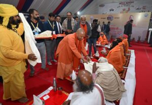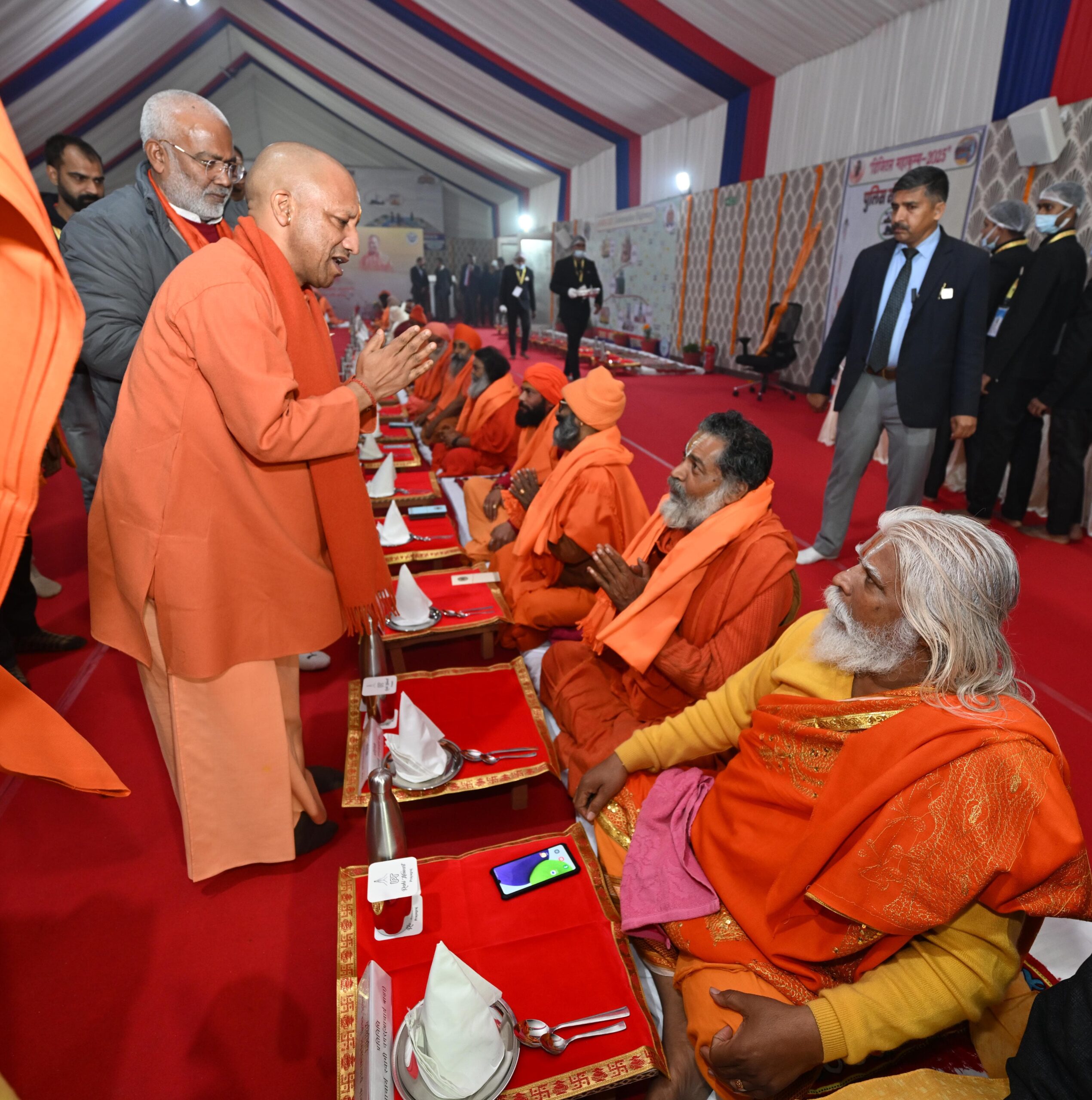 सीएम योगी ने सभी अखाड़ों के संतों के साथ किया भोजन, भेंट किए उपहार